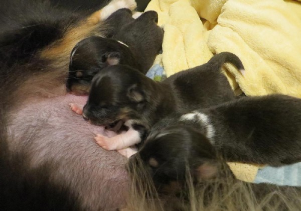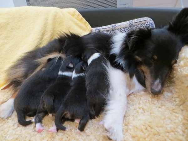 "Biri" Barbara-Biri Blackdiamondshelties und Comet Mondeo sind am 17.1.2019 Eltern geworden vom "M" Wurf "Mister"