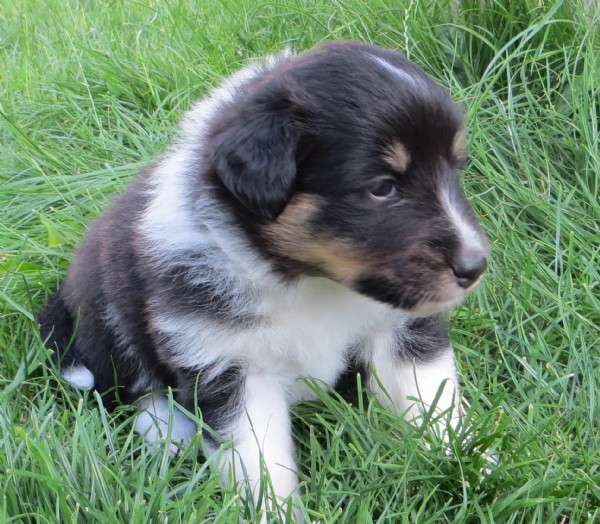 1 trico Rüde und 3 Hündinnen in 2 trico und 1 merle.