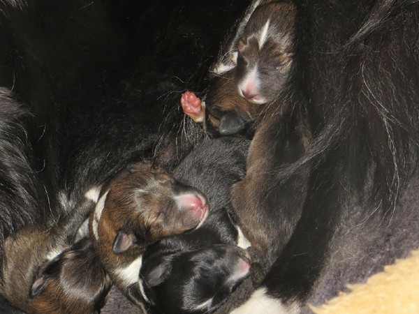 Am 10.04.2014 kamen schließlich die drei Hündinnen und der Rüde auf die Welt.