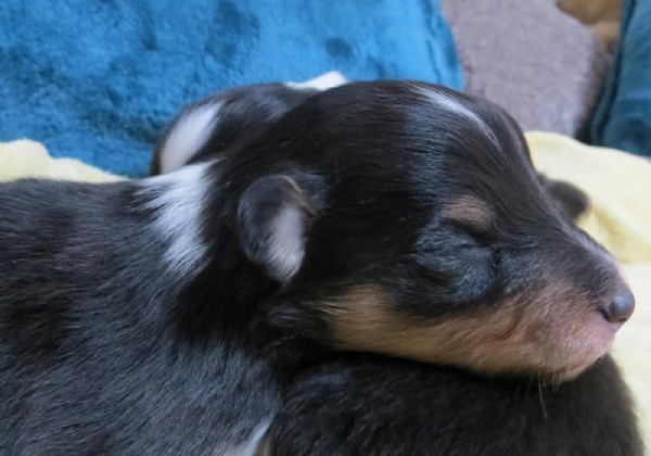 Pearl - Wurf " ist am 26.09.2019 geboren. Nelly und Tommy sind Eltern von 3 Rüden und 2 Hündinen in tricolor geworden.